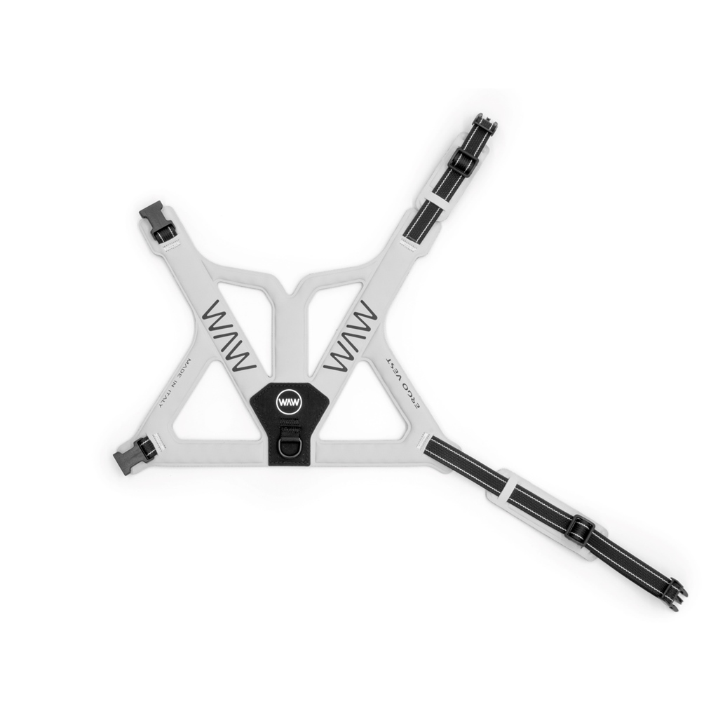• Dissipa energia negativa: grazie al sistema WAVE tech e alla geometria a 3 fasce, che scaricano l’energia delle forze di traino su tre bande tecniche per limitare la pressione della pettorina durante la passeggiata con il cane.