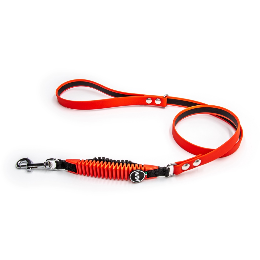 Lo smorzatore Antishock, certificato , elimina la rigidità del guinzaglio, protegge cane e padrone da strappi e traumi e riduce lo strattone fino al 40%.